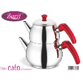 Theière double moyenne en inox avec couvercle, poignées rouges ZARIF