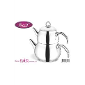 Theière double grande en inox avec couvercle, poignée satinée ZARIF